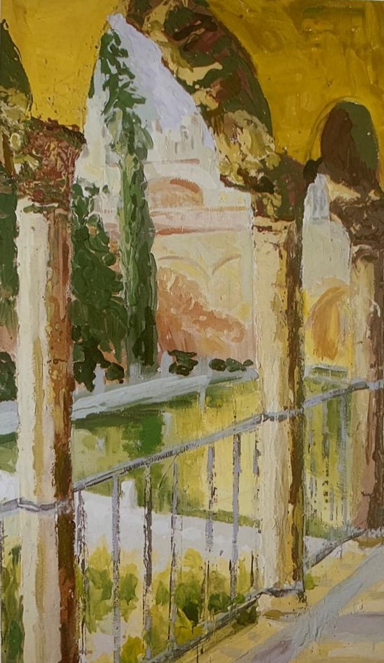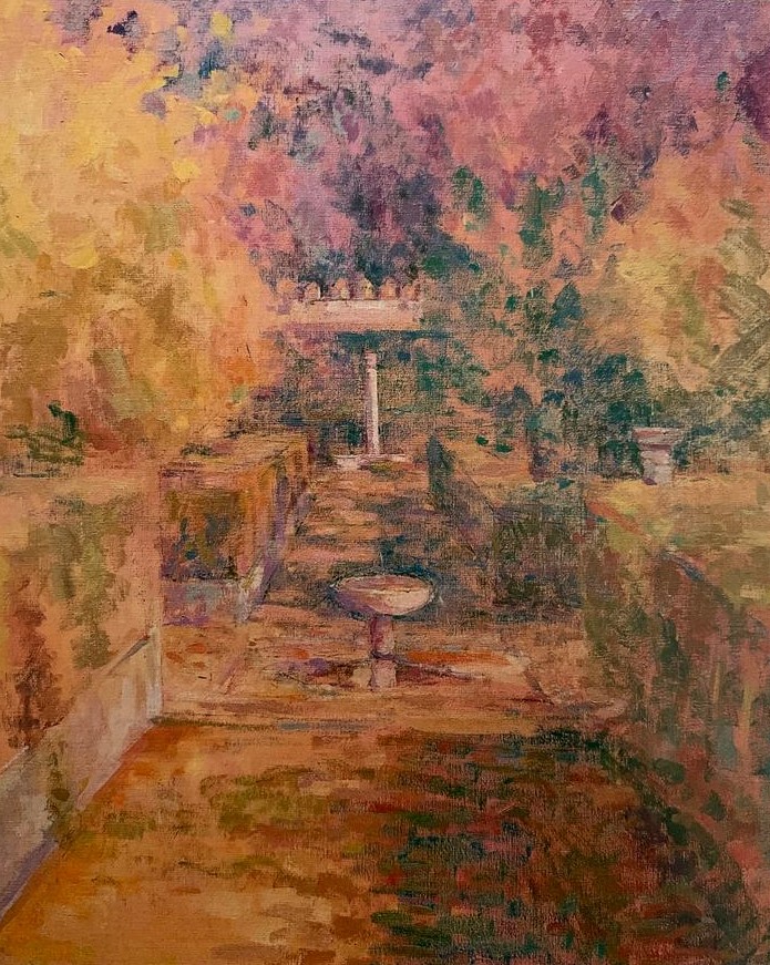 La pintura es su pasión que la convirtió en un bonito trabajo. Ha pintado muchos paisajes desde que comenzó en los años 80 cuando aún era jovencita. Salía con su caballete por calles y jardines en busca de captar los mejores momentos de luz y color, dos aspectos fundamentales de su pintura.